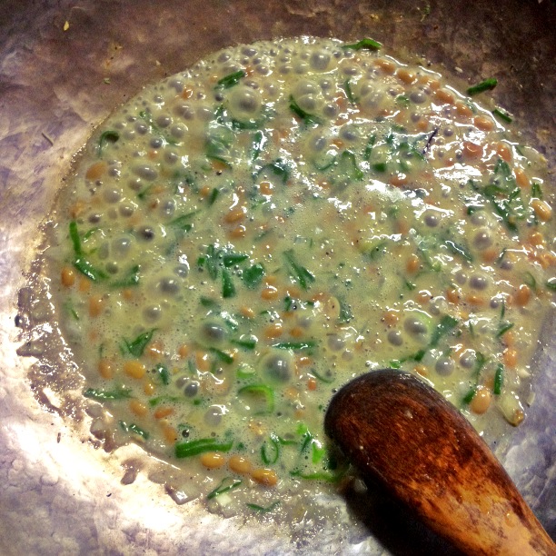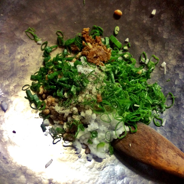 2014/05/10 Category : メニュー 納豆みそ! 我が家は、一人を除き、納豆が大好き( ̄▽ ̄) でも、納豆を皆で食べると、すぐなくなってしまう・・・。 何とか、納豆を節約しつつ、長く楽しめないかしら~? と思い、本をパラパラめくっていたら、ありました^^ ”納豆みそ”。(カノウユミコさん著”菜菜ごはん”参照) 先日頂いたお味噌も一緒に長く楽しめるし、何て素敵レシピ!!! 早速作りました。 少しアレンジして・・・。 納豆(2パック)に、玉ねぎの葉を刻んだものと玉ねぎみじん、 にんにくのしょうゆ漬けを2片、ごま油、こしょう少々を混ぜ合わせて火にかけます。 (今回は鍋に直接入れました~) さっと炒め合わせたら、水100㏄(50㏄から加減を見てね)を加え 中火で2~3分煮ます。焦るほどクリーミー。 さらに、味噌(1/2カップ~お好みで)、コチュジャン(大1弱)を加えて 全体が味噌っぽくなるまで、弱火で混ぜながら煮詰めます。 煮詰める間、ごま油(大3程度)を少しずつ加えながら混ぜていってください。 ししとうがあればみじん切りにして仕上げ前に投入。 うちはなかったので、味噌状態になったところを火からおろし、仕上げにすりごまを 入れ混ぜて、出来上がり 作る時間はそんなにかからないし、日持ちもするので、いい常備菜ができました~。 ご飯はもちろん、肉みそのようにレタスにくるんで頂くと、これがめっちゃ合う!!!! 激しくオススメですm(_ _)m 愛媛の野菜、みかん販売中~。詳しくは上記[ご注文/お問い合わせ]にて^^ [0回]