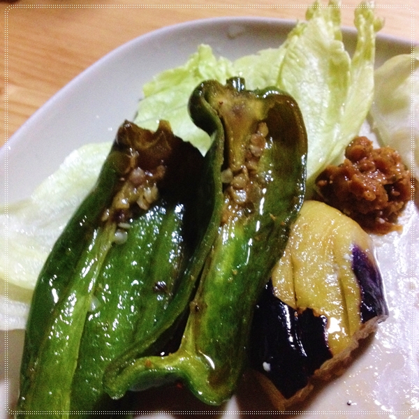 ちと見た目が美しくありませんが・・・揚げ野菜と味噌の組み合わせ、